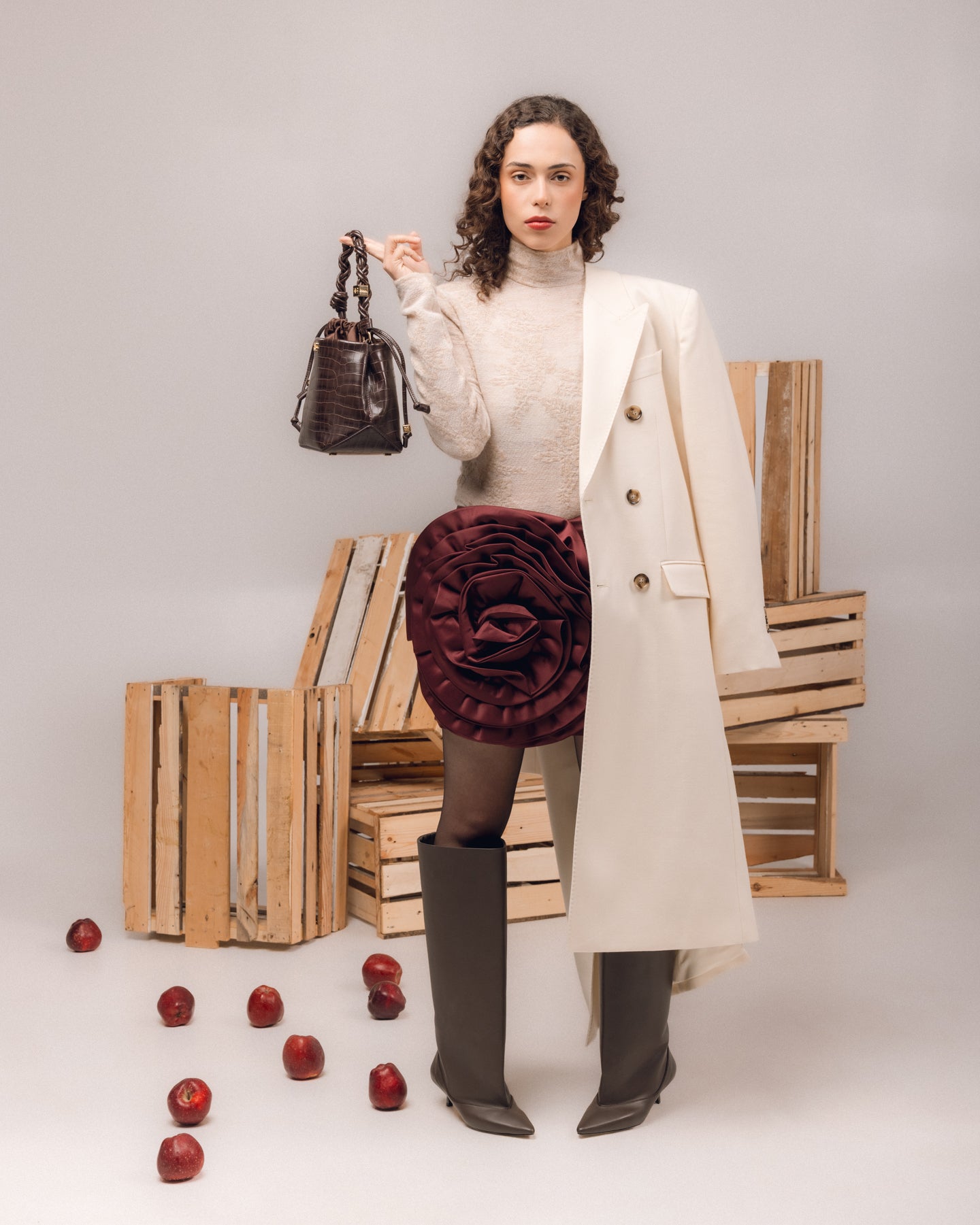 Wool Midi Herringbone Wrapped Skirt