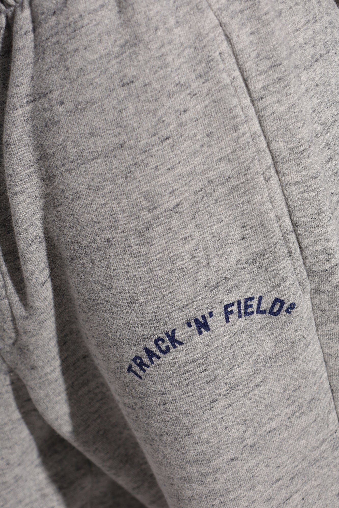 The discreet “TRACK ‘N’ FIELD²” logo in navy blue draws attention and harmoniously matches the grey tone of the fabric. An elastic waistband with an additional drawstring ensures a perfect fit, while practical side pockets complete the look. The minimalistic design makes this model an outstanding choice for style connoisseurs.