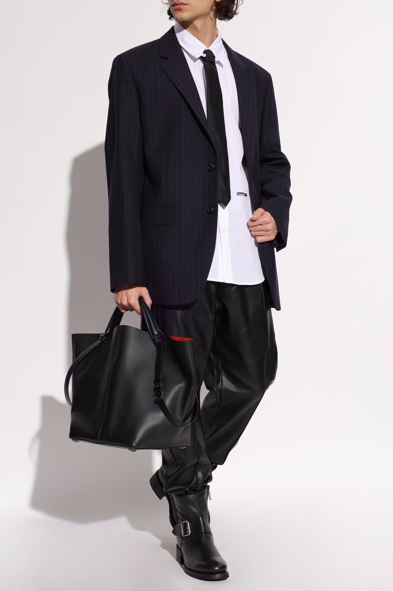 Detailed with single-button, beveled cuffs and adorned by a discreet designer logo— a black rectangular accent with distinctive white DSQUARED2 lettering — this shirt exudes understated confidence. Its exquisite material and thoughtful tailoring make it an indispensable element in any sophisticated wardrobe.
