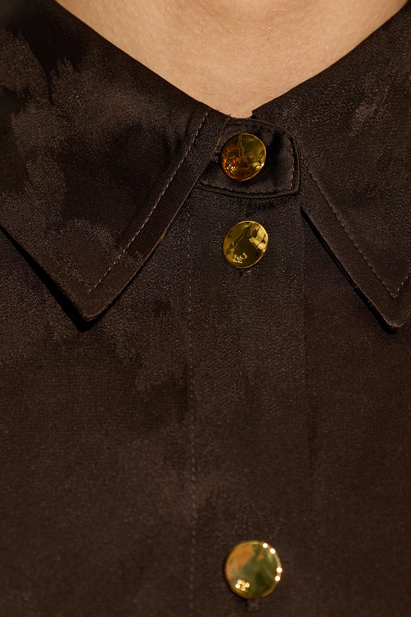 This Ganni Satin Jacquard Shirt brings an effortless, fashion-forward edge with a relaxed silhouette, open back and tie waist complete with signature GANNI Butterfly logo ends. Crafted from a fluid blend, this drapes beautifully for an elevated yet easy-to-wear look. Key features of this Ganni shirt are: